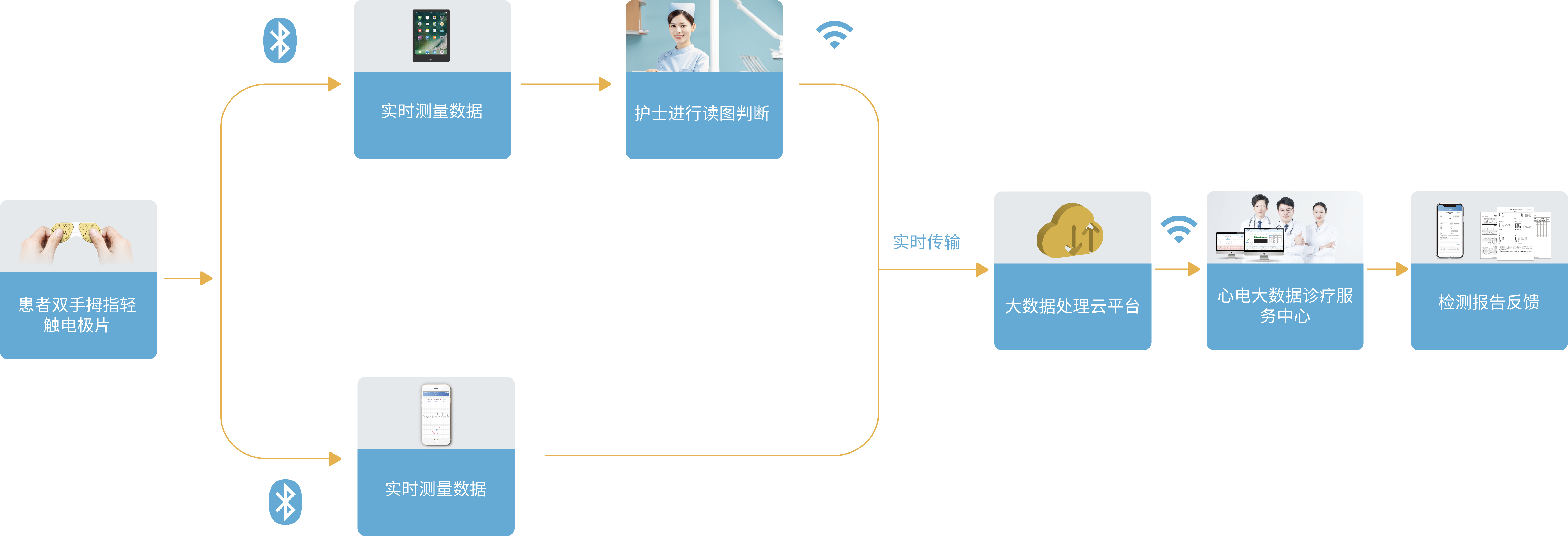 由醫(yī)護(hù)人員在門診或者科室對(duì)患者進(jìn)行30秒心電圖檢測(cè),篩查房顫,幫助發(fā)現(xiàn)無(wú)癥狀房顫病例,幫助護(hù)士導(dǎo)診,進(jìn)一步對(duì)患者進(jìn)行跟蹤和治療。