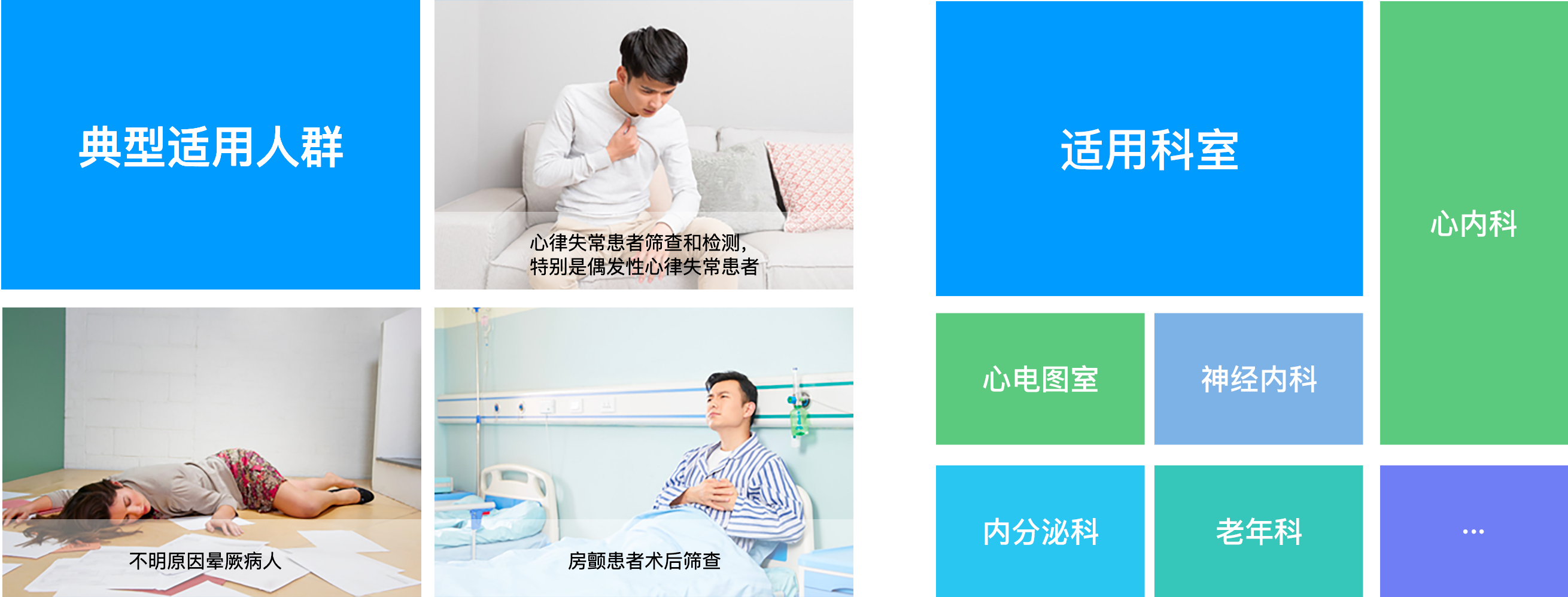 作為Holter的補充,面向偶發(fā)性心律失常、長RR間期等患者,用于檢測24小時Holter檢測不出或者檢出率低的心律失常,篩查不明原因暈厥病人的心律失常。不影響病人正?;顒樱合丛?、運動等,特別是可誘發(fā)更多心律失常發(fā)作的活動。