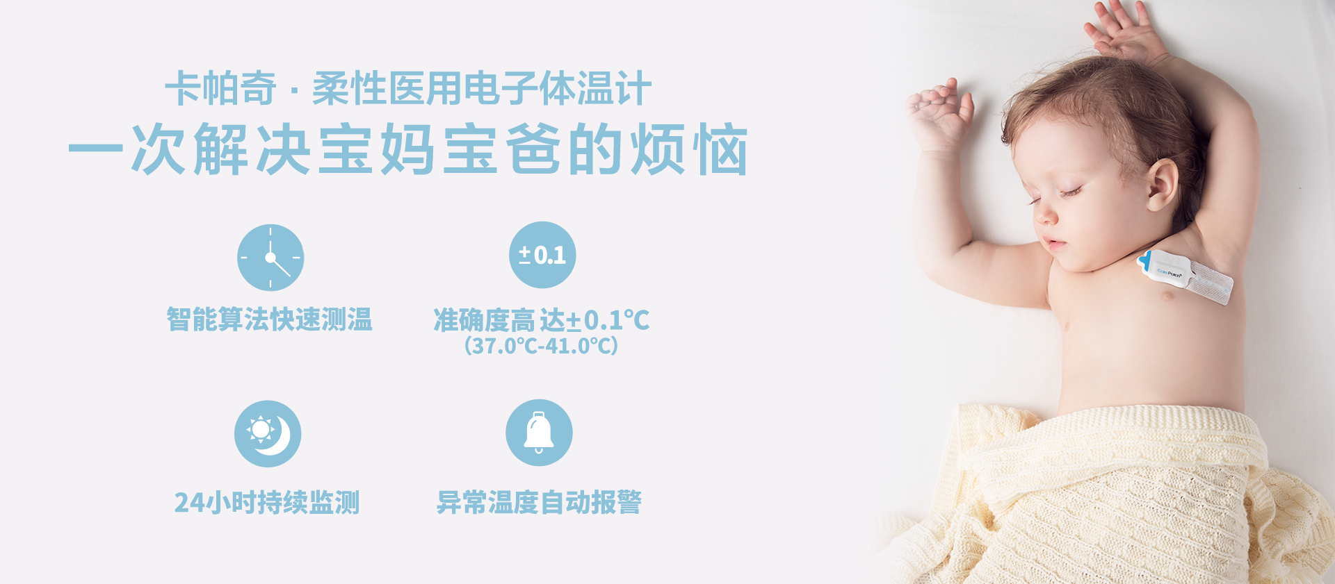 CarePatch(卡帕奇)體溫貼是專為有連續(xù)體溫監(jiān)測(cè)需求人群設(shè)計(jì)的柔性體溫監(jiān)測(cè)設(shè)備,快速測(cè)溫,7*24小時(shí)連續(xù)監(jiān)測(cè)和記錄腋下溫度,支持高溫報(bào)警、遠(yuǎn)程分享等功能,可無(wú)線充電,重復(fù)使用。